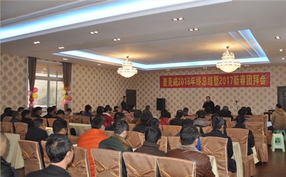 2017年1月25日,四川麥克威科技有限公司(四川麥克威通風設備有限公司)在成都金堂淮口鎮望江馨城山莊召開2016年終總結暨2017新春團拜會,麥克威全員參加,主要內容包括:總結回顧全年工作及表彰先進,麥克威人喜迎新春年會文藝匯演及團圓午宴等。年度會議及迎新春活動圓滿落下帷幕。